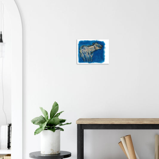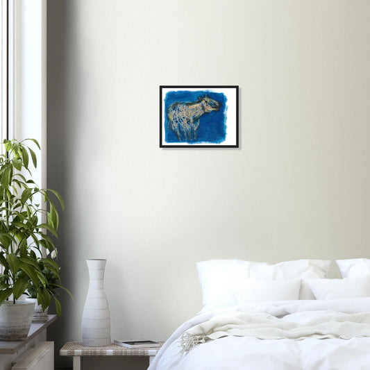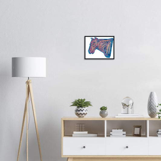 Blue Horse (1990s) – Open Edition Giclée Print by Joe Barrett - Classic Matte Paper Wooden Framed Poster