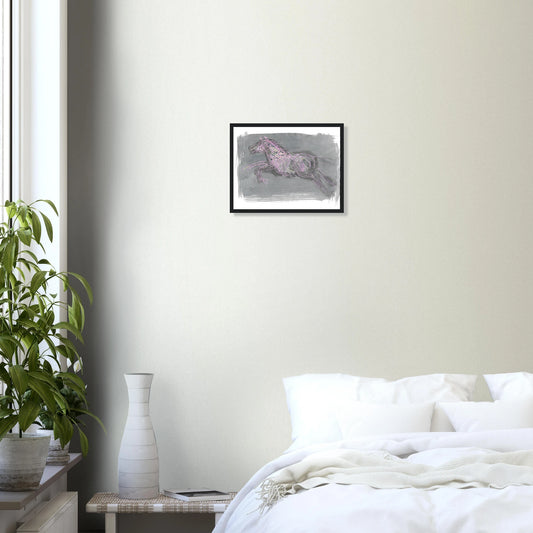 Galloping Horse (1990s) – Open Edition Giclée Print by Joe Barrett - Classic Matte Paper Wooden Framed